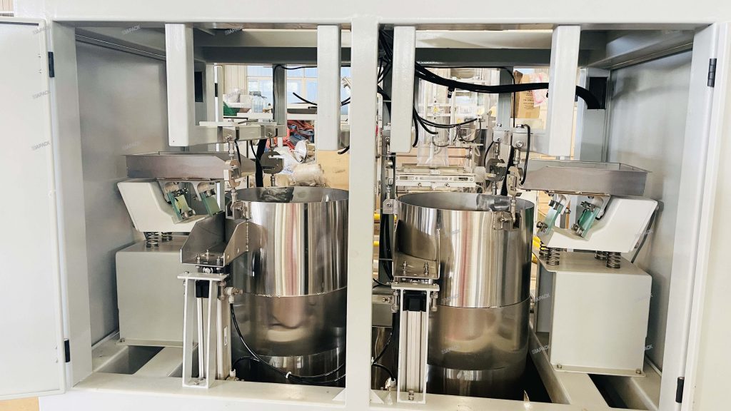 Bu vahid maşın qoz-fındıq xurmaları, çiplər, taxta qranullar gübrə və s. kimi kiçik parça məhsulları qablaşdırmaq üçün xüsusi dizayndır. Bütün maşın gövdəsi SUS304 tərəfindən hazırlanmışdır. O cümlədən məhsulun çəkisini ölçən doldurma maşını, VFFS torbası əmələ gətirən möhürləmə qablaşdırma maşını, çəkin maşını üçün bir dəst platforma və bitmiş çantanın ötürülməsi üçün çıxış konveyeri üçün bir dəst platforma.