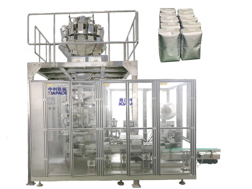 Bir dəst vffs çanta formalaşdıran doldurma möhürləmə maşını, bir dəst üstü etiketli çanta qablaşdırma maşını, bir dəst çəki yoxlayıcı və bufer konveyer maşını və bir dəst büzüşmə filmi sarma maşını da daxil olmaqla bütün xətt. və əyilmə .Bu bölmənin maşınında çantanın vakuumunun əlavə edilməsi üçün əlavə isteğe bağlı funksiya var .