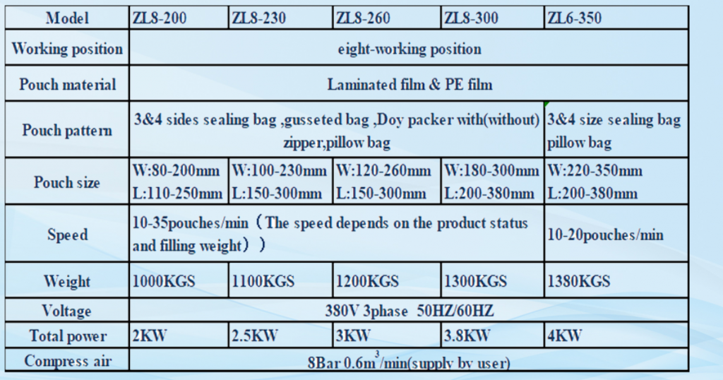 Şorba üçün iki dəst qarışdırma nasosu və doldurma qablaşdırma maşını götürən bir dəst fırlanan çanta daxil olmaqla bütün maşın. Əsas maşın PLC tərəfindən idarə olunur və toxunma ekranı ilə işləyir. Məşhur elektrik aksesuarlarını qəbul edin. Yüksək avtomatlaşdırma və istifadəsi asandır. Gündəlik kimya, qida, avadanlıq və s. kimi müxtəlif sənaye tərəfindən geniş istifadə olunur.