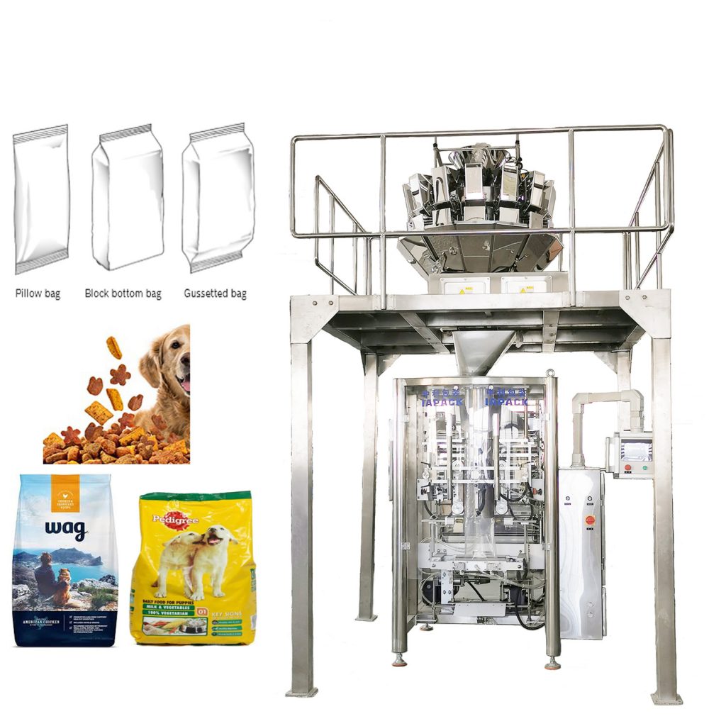 Bu maşın vahidi bir VFFS520 avtomatik şaquli qablaşdırma maşını, bir ZR14-1.6L çox başlıqlı çəki maşını, bir DT5 vedrə liftindən ibarətdir. O, avtomatik olaraq materialın qidalanması, çəkilməsi, torba istehsalı, doldurulması, qablaşdırılması, çapı, kəsilməsi və s. funksiyalarını həyata keçirə bilər.
