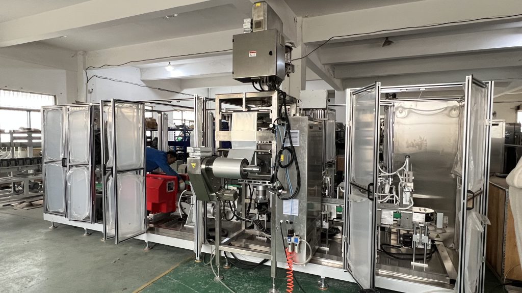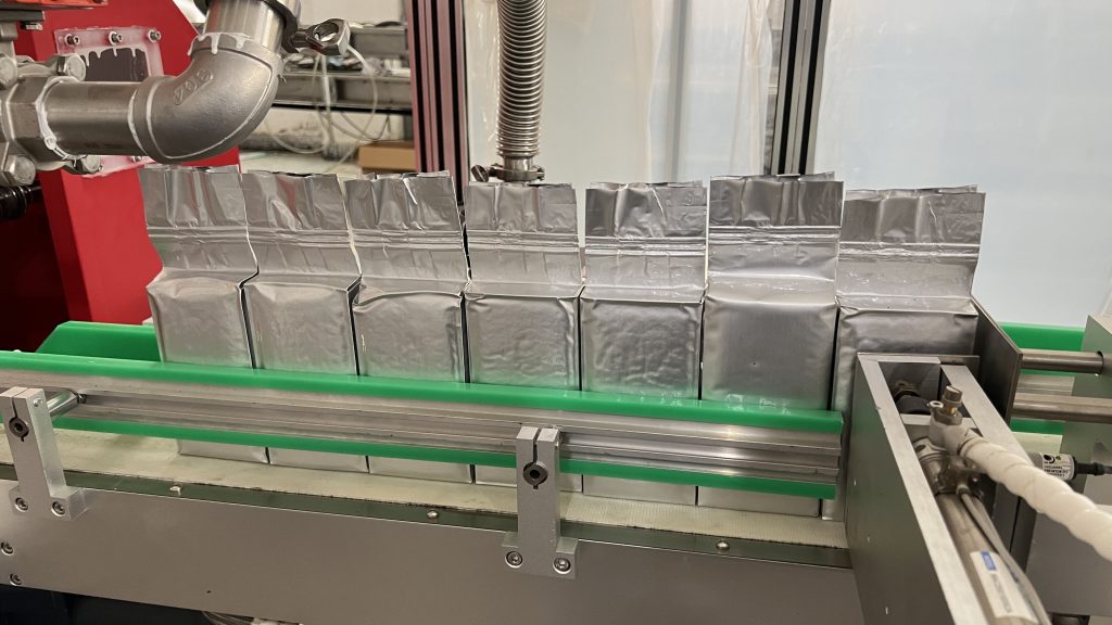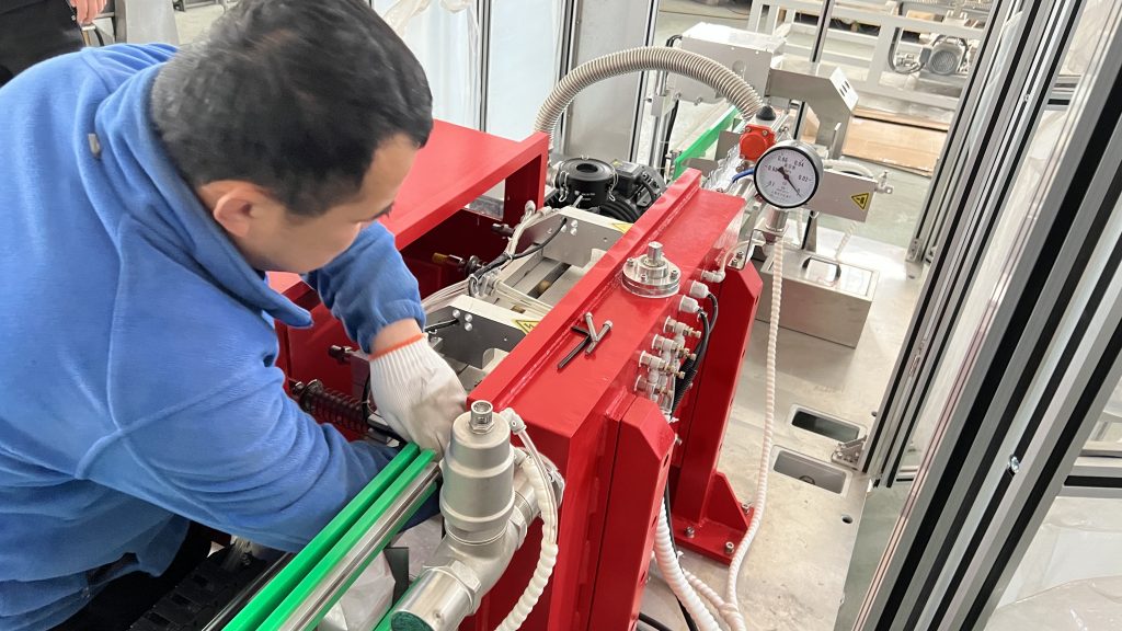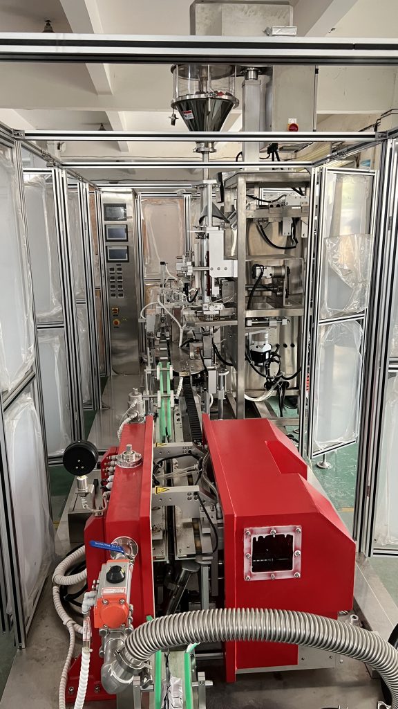 İrandan olan müştərimiz 250 qramlıq qəhvə tozu üçün doldurma qablaşdırma maşını üçün avtomatik kərpicdən vakuum torbası formalaşdıran bir dəst sifariş verdi. Və müştəri tələbinə əməl edərək, vakuum kamerasını Xəbərdarlıq olaraq qırmızı rəngə boyadıq.