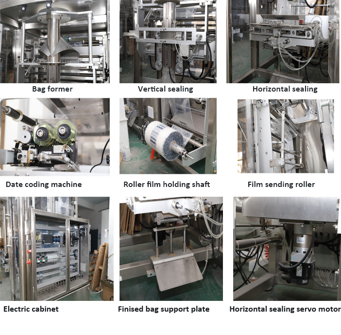 Bu maşın qurğusuna bir dəst ZL720 şaquli çanta formalaşdıran doldurma möhürləmə maşını və bir dəst ZLC-5000 Dörd vedrə çəkisi maşını, Bir dəst DT3 şaquli lift və çıxış konveyer maşını daxildir.Bütün maşın bölməsi avtomatik çanta istehsalına, məhsulun çəkilməsinə, məhsulun doldurulmasına çata bilər. möhürləmə və tarix kodlaşdırması . Lampa, yuyucu toz, düyü, lobya və digər dənəvər məhsulların qablaşdırılması üçün geniş istifadə olunur.